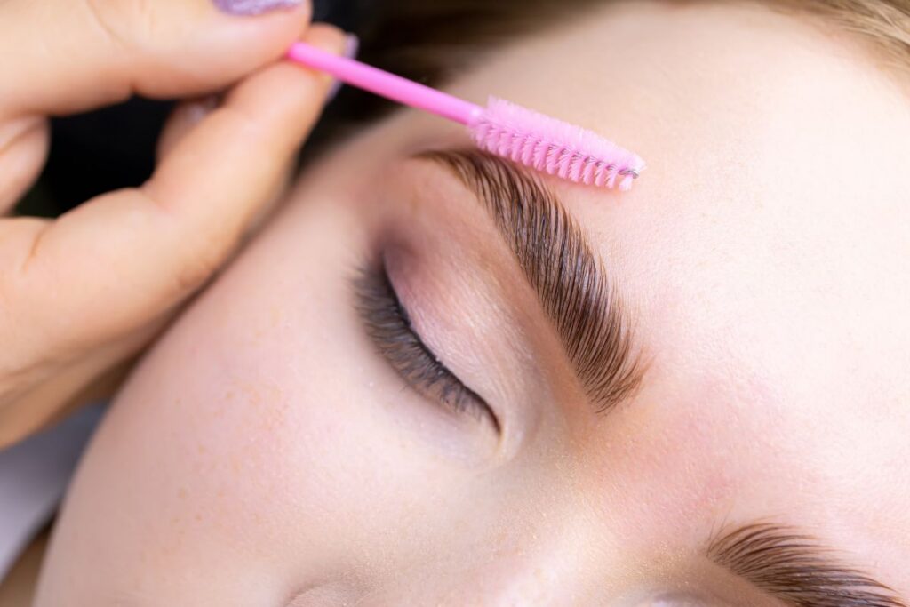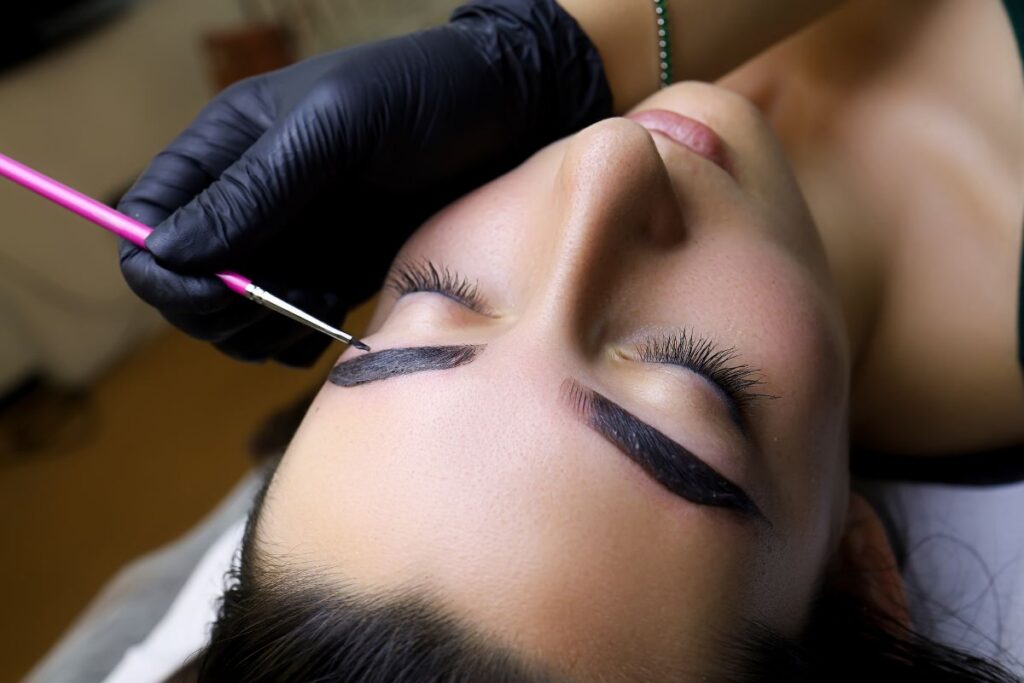 Завершающий этап — деликатный уход за кожей вокруг ресниц и бровей, чтобы закрепить результат и обеспечить комфорт.